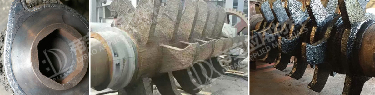DB-969 | 自保護(hù)或氣保護(hù)或埋弧 | 混合氣/中性焊劑 | 1.6,2.0,2.4,2.8,3.2 | C,Mn,Si,Cr,Mo | 55-59 | 焊接金屬為自硬性馬氏體組織??赡透邞?yīng)力磨耗,粘滯磨耗等特性。適用于金屬與金屬或金屬與砂土間的磨損。 | 疏浚切刀,攪拌螺旋葉,農(nóng)具,壓碎機(jī)等。 |